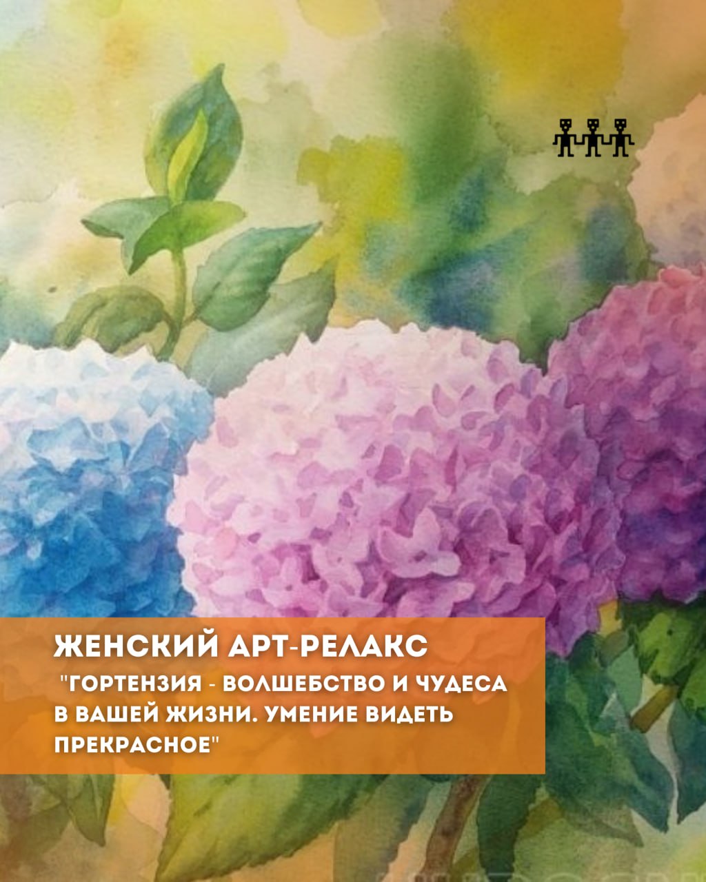 Женский Арт-релакс "Гортензия - волшебство и чудеса в Вашей жизни. Умение видеть прекрасное" рисование гуашью в нестандартных техниках